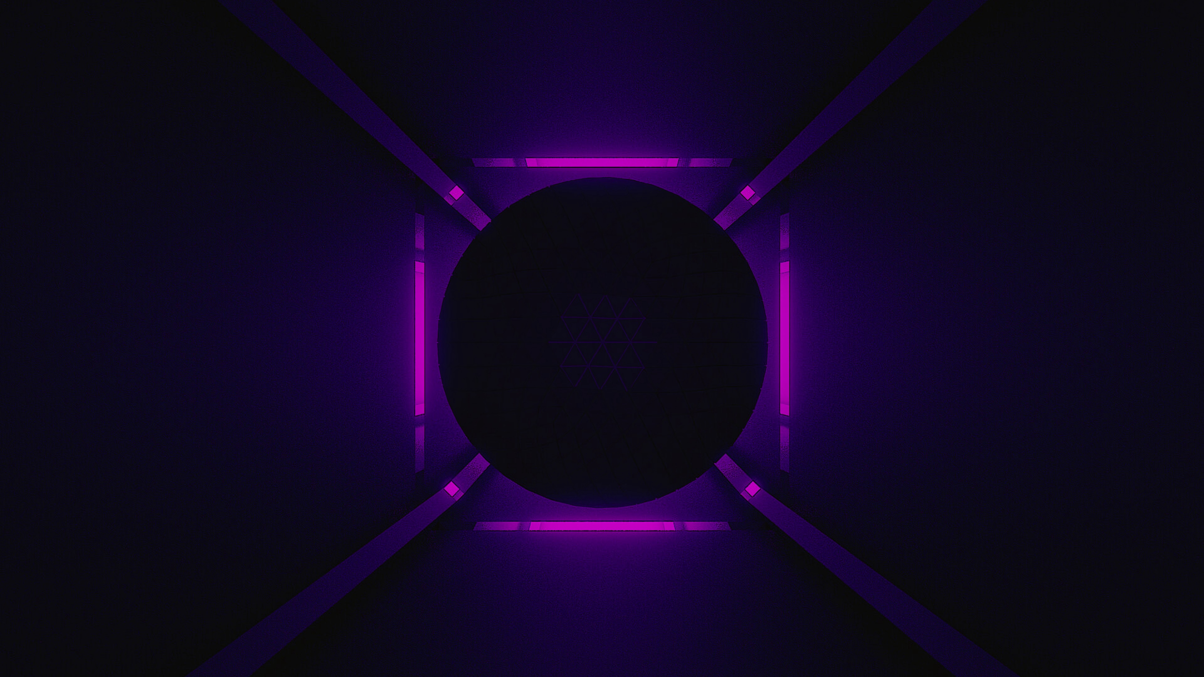 Description: A dark room with a circular light in the middle of it and a purple light in the middle of the room.