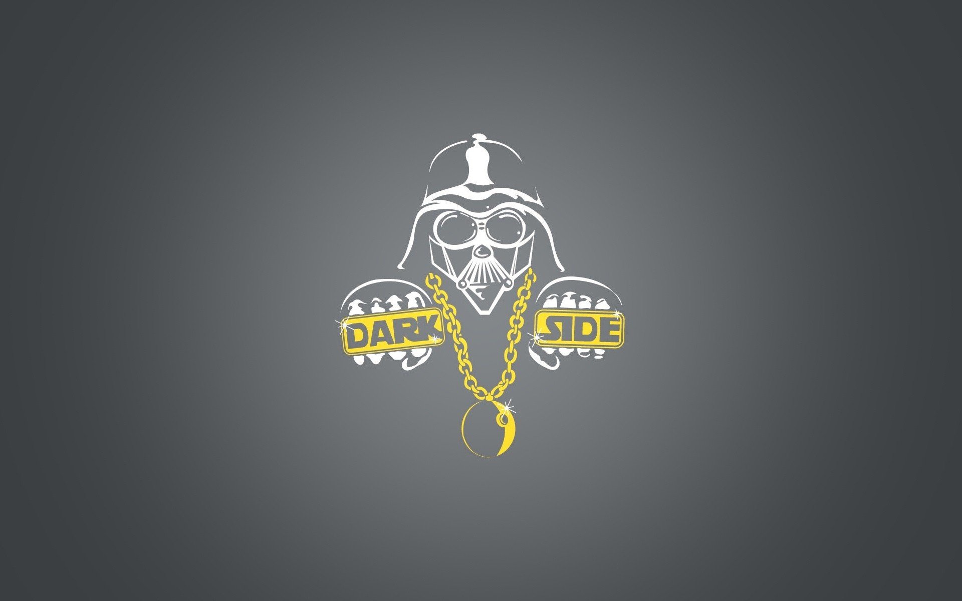 Description: A dark side logo with a chain and a helmet on it's head and a chain around the neck.