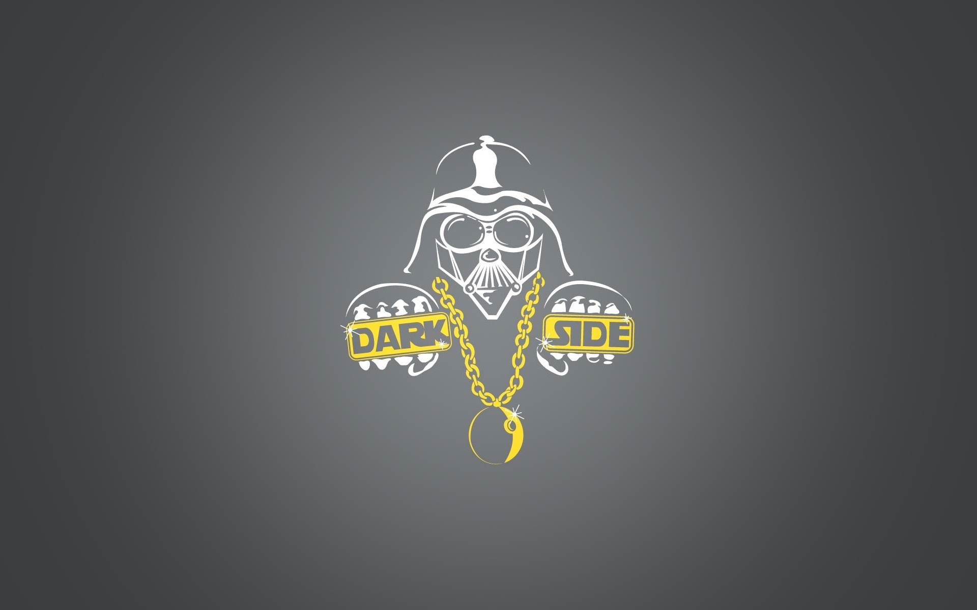 Description: A dark side logo with a chain and a helmet on it's head and a chain around the neck.