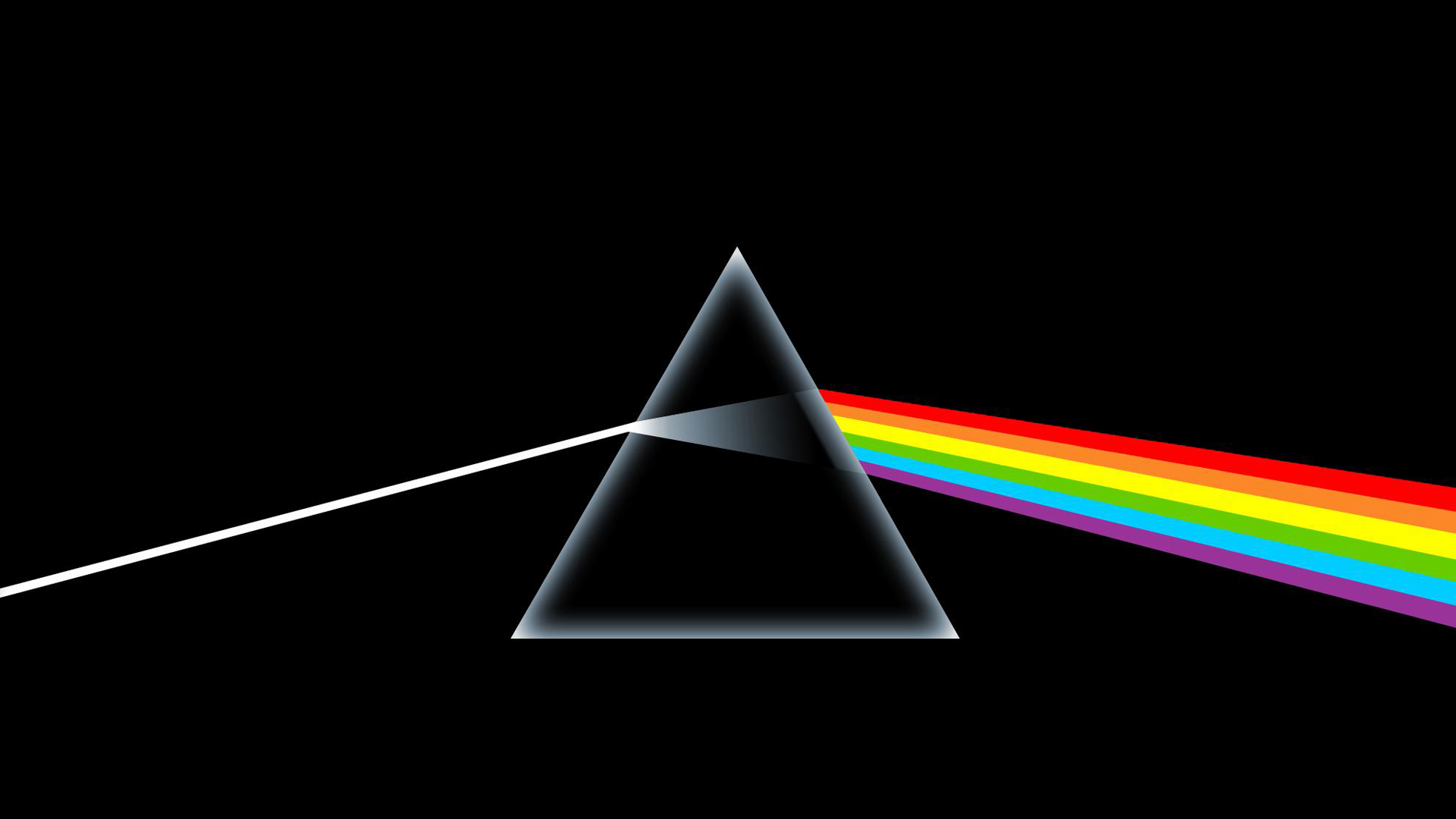 Description: A dark side of the moon with a rainbow light coming out of it's side of the moon.