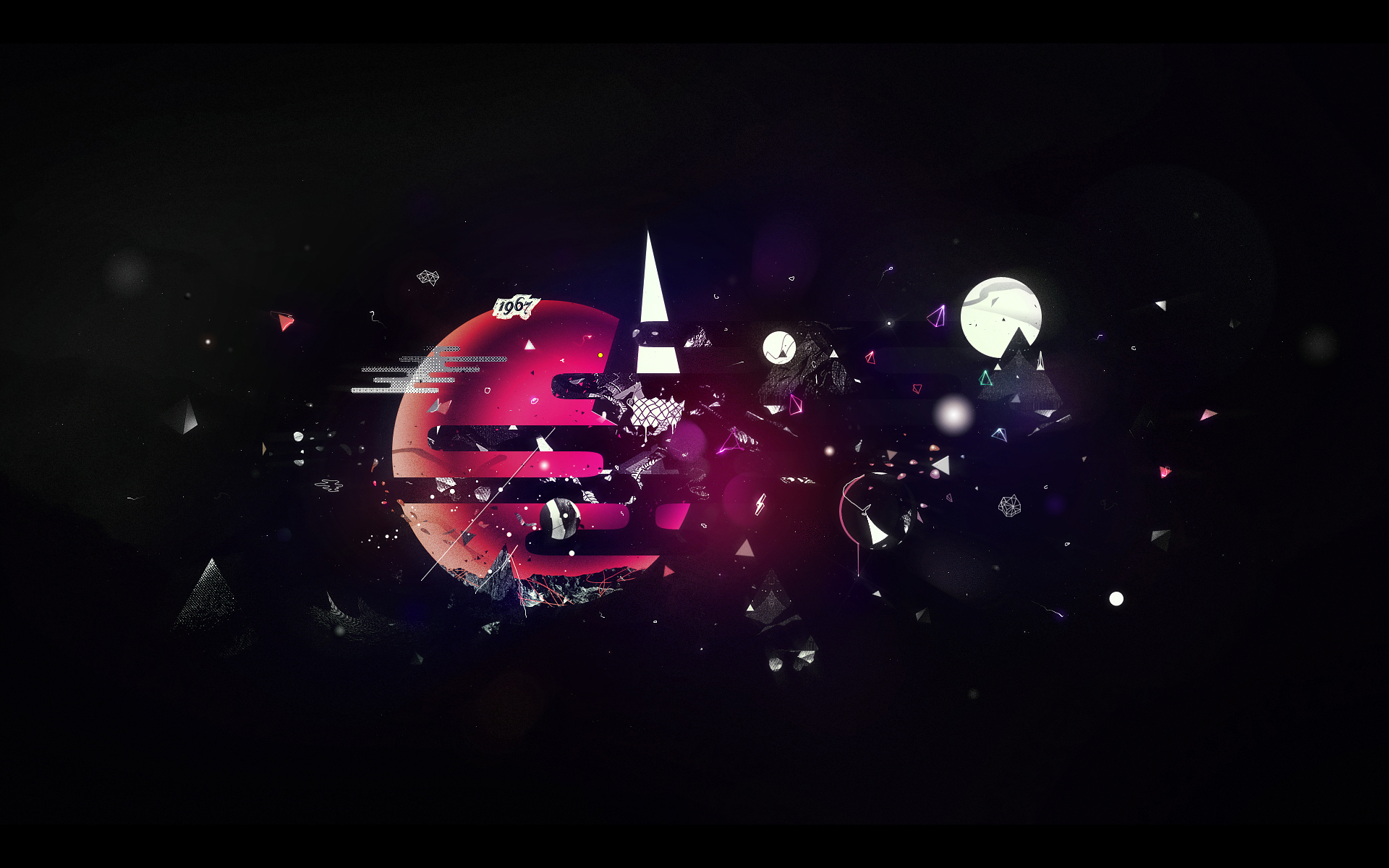 Description: A dark background with a red and black clock and a white clock tower and a black sky with stars.