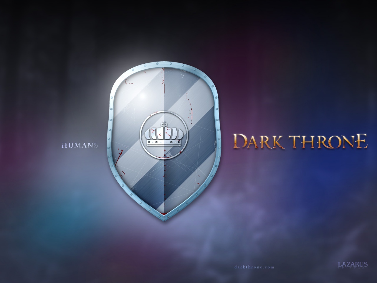 Description: A dark throne logo with a crown on it's shield and a blue and purple background with a purple and blue hue.