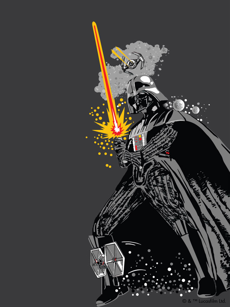 Description: A darth vader with a light saber in his hand and a smokestack in the background.