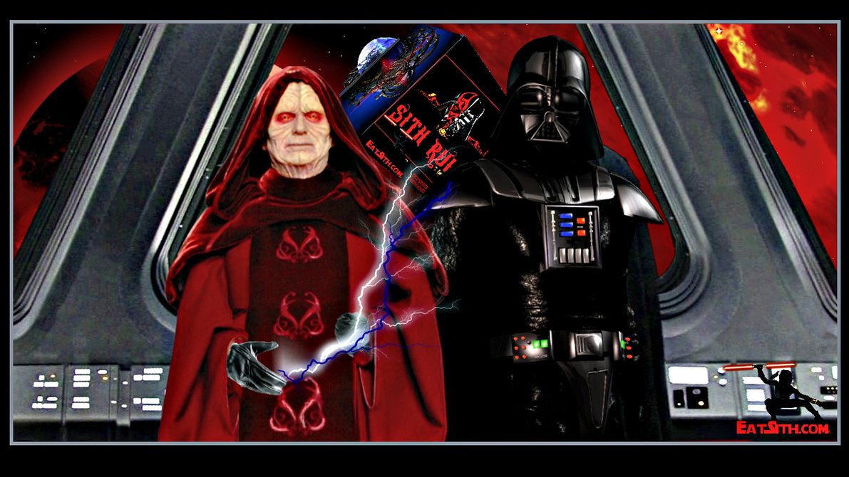 Description: A man in a darth vader costume next to a darth vader character in a star wars movie.