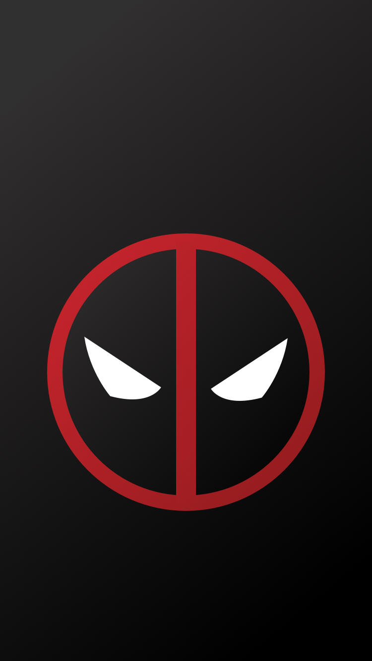 Description: A deadpool logo with eyes and a red circle around it's center.