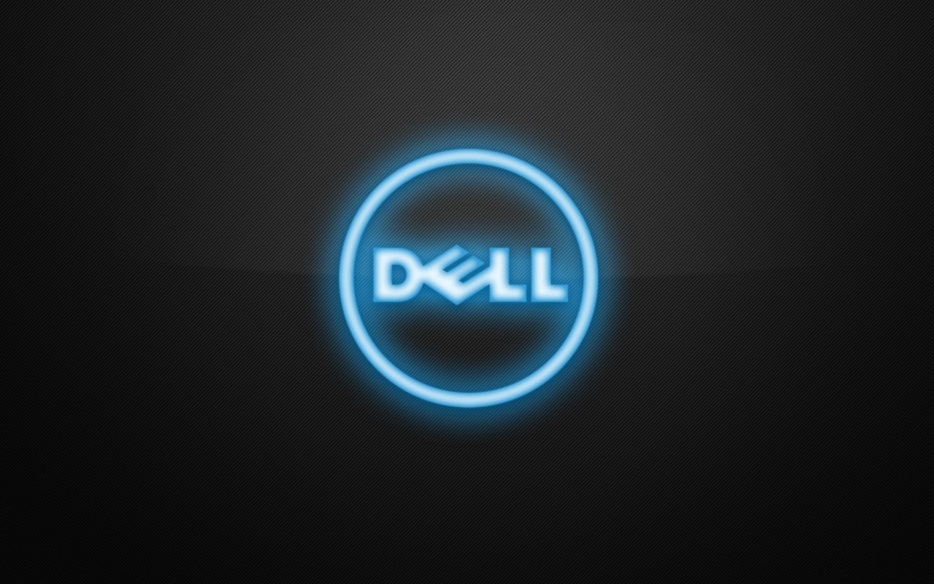 Description: A dell logo is shown in the dark with blue light around it and a circular light above it that says dell.