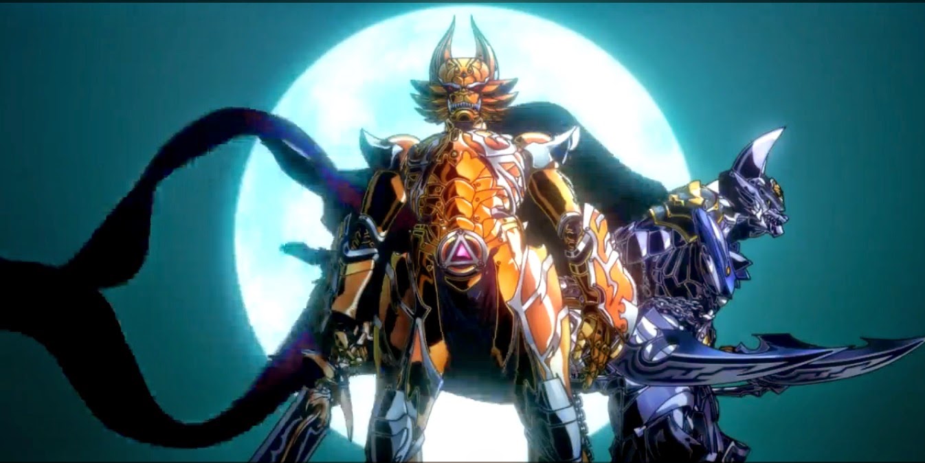 Description: A cartoon of a demon and a demon with a full moon in the background and a giant moon in the background.
