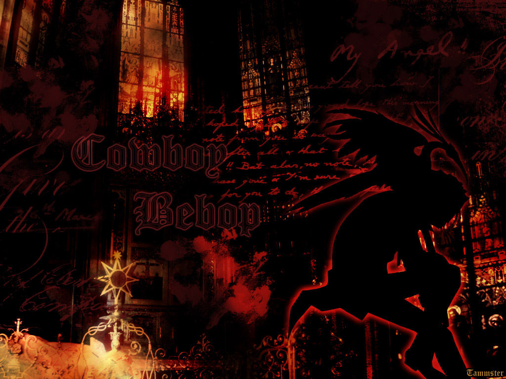 Description: A red and black picture of a demon in a dark room with a christmas tree in the background and a lit up window.