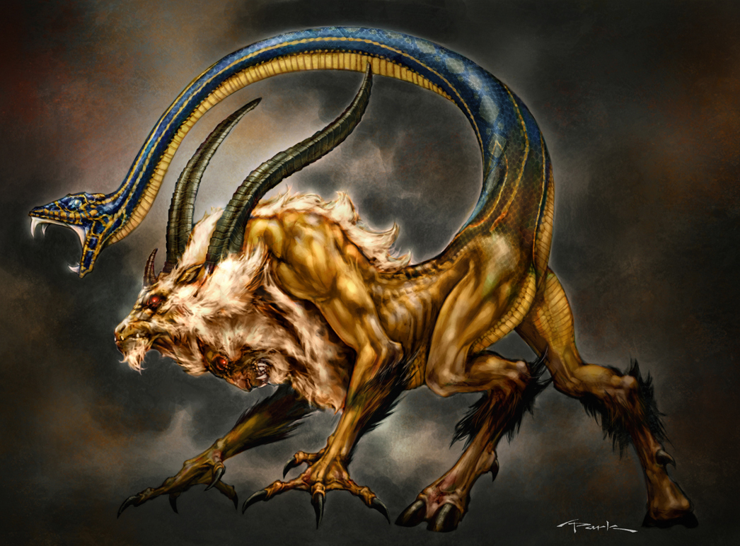 Description: A painting of a demon with a snake on its back and a snake on its back.