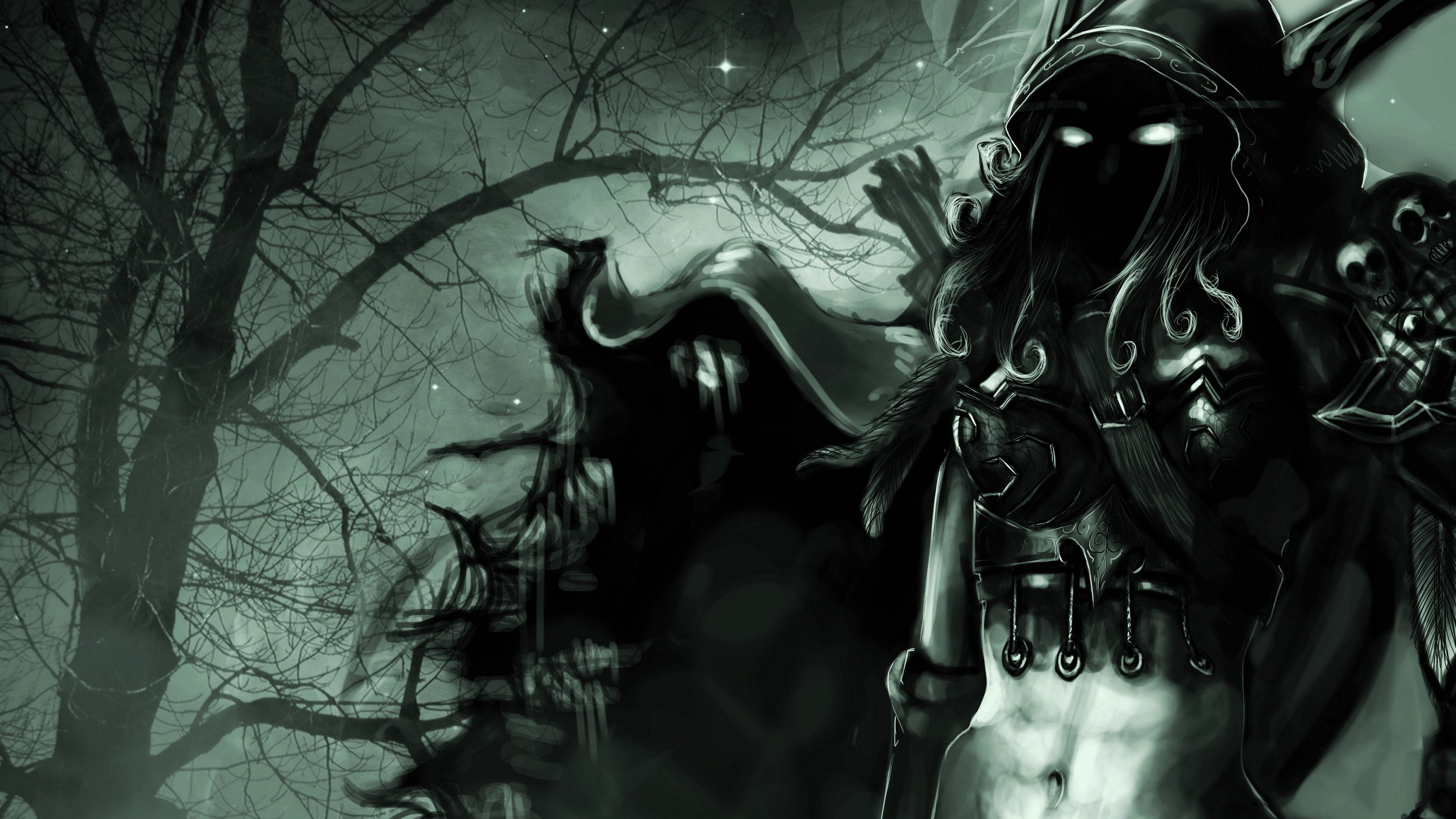 Description: A demonic looking demon with a sword in his hand and a demon on his shoulder.