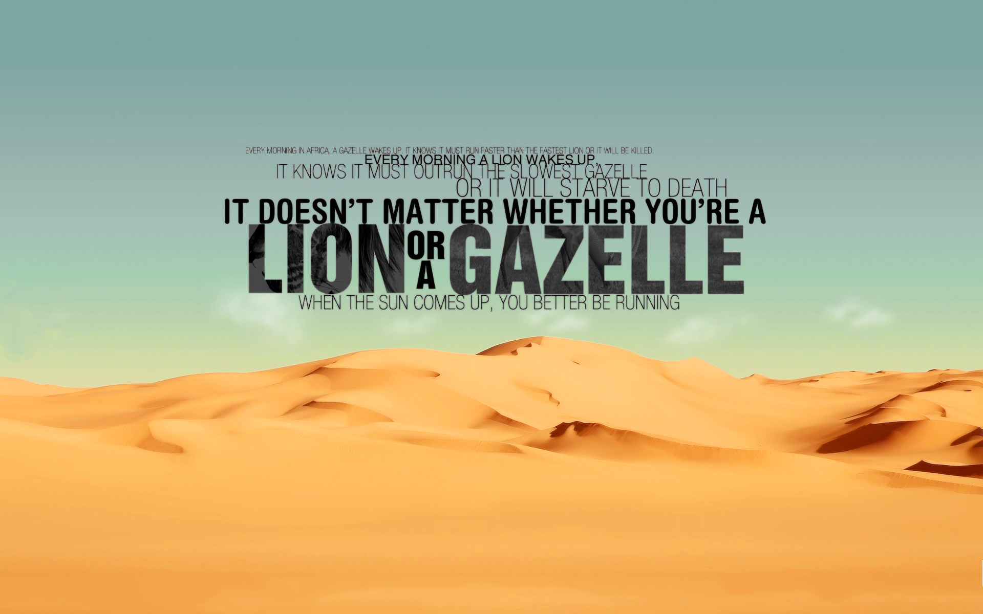 Description: A desert with a quote about lions and a sky background with clouds and a green sky above it.
