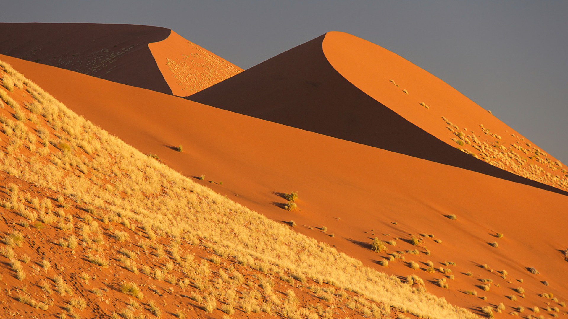 Description: A desert with a hill of sand dunes and a sky background with a few clouds in the distance.