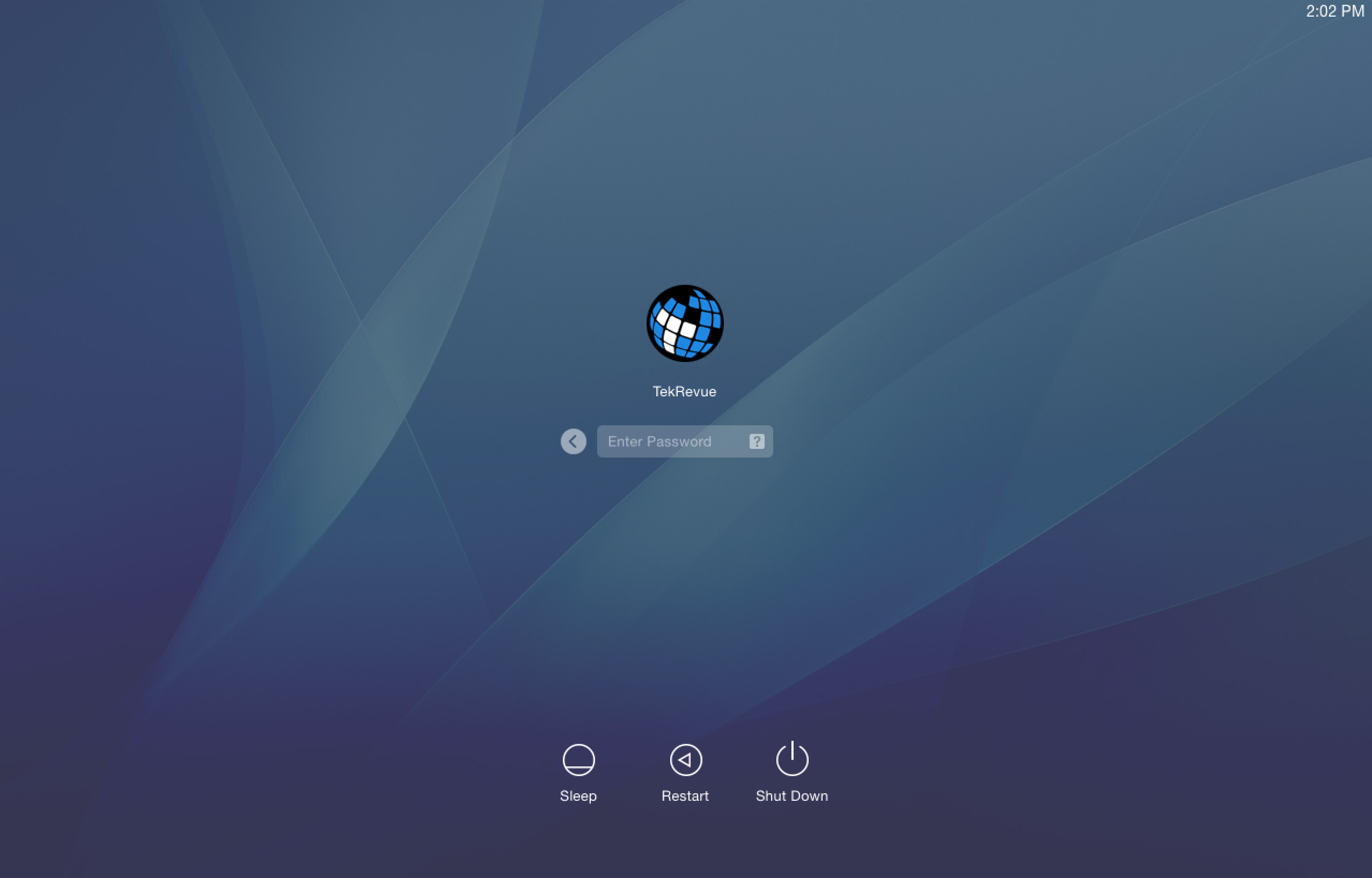 Description: A desktop screen with a blue background and a blue logo on it.