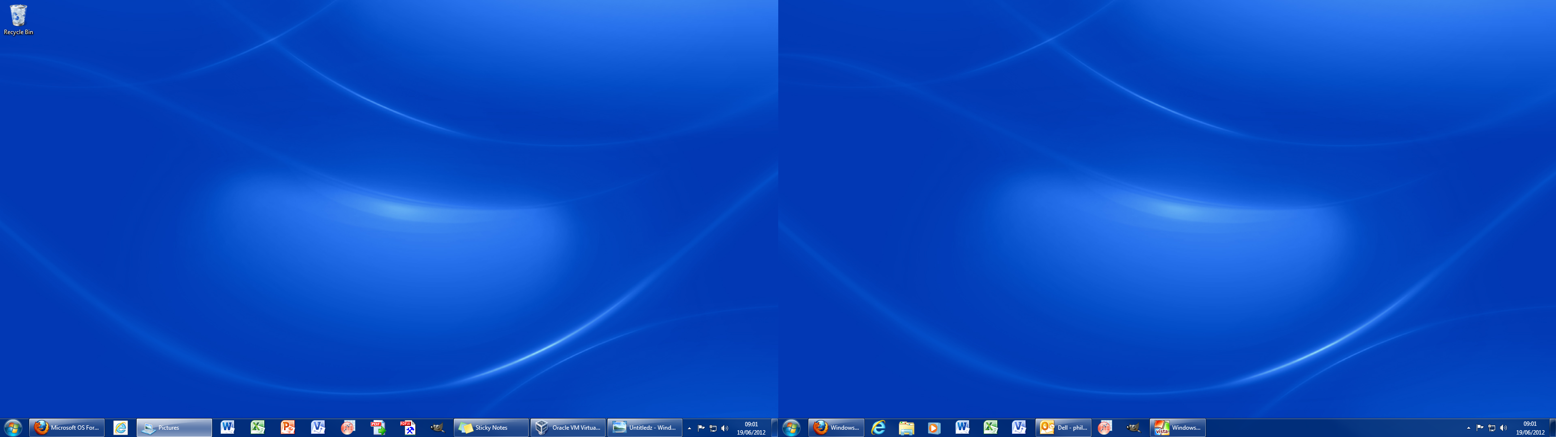 Description: A desktop computer with a blue background and a blue wallpaper with a blue wave pattern on it's side.