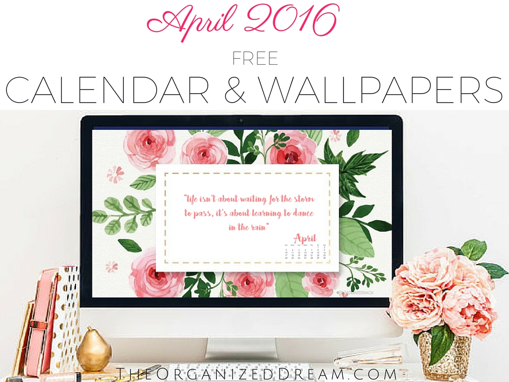 Description: A desktop computer sitting on top of a desk next to a vase of flowers and a calendar on a computer screen.