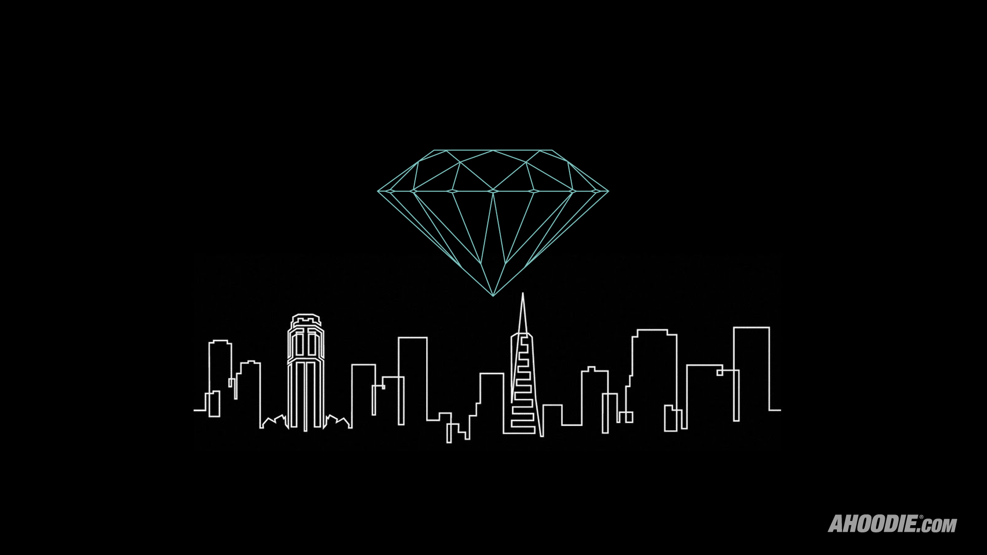 Description: A diamond in the middle of a city skyline with buildings and skyscrapers in the background.