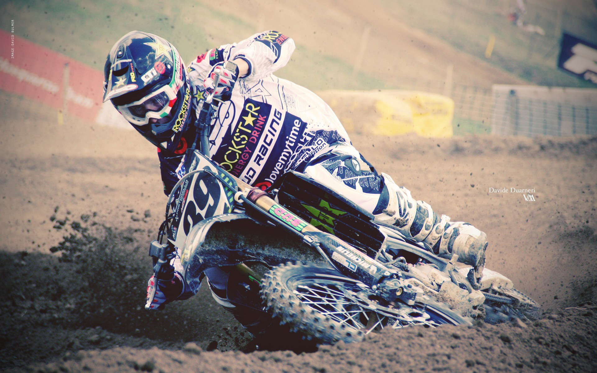 Description: A person riding a dirt bike on a dirt track in the dirt with a helmet on and a helmet on.