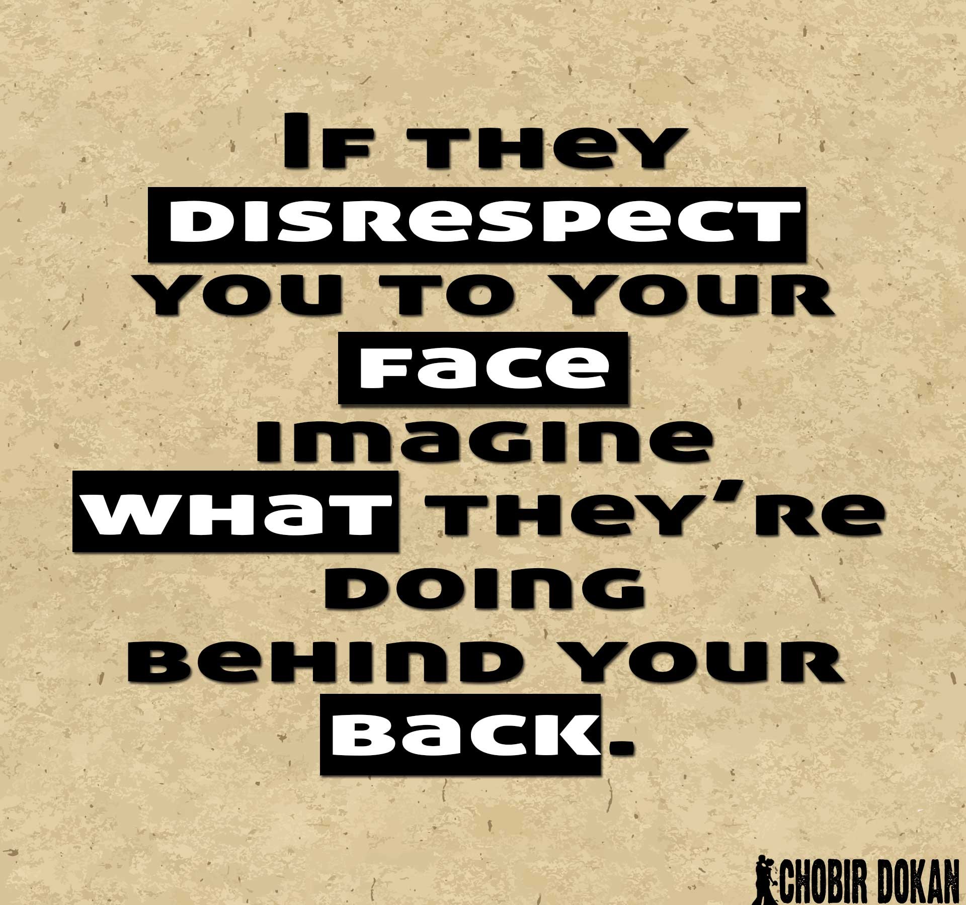 Description: A quote on a piece of paper with a black and white background that says if they disrespect you to your face imagine what they're doing behind your back.