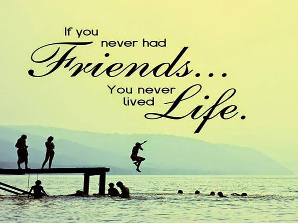 Description: A picture of a group of people jumping off a dock into the water with a quote above it that says if you never had friends you never lived life.