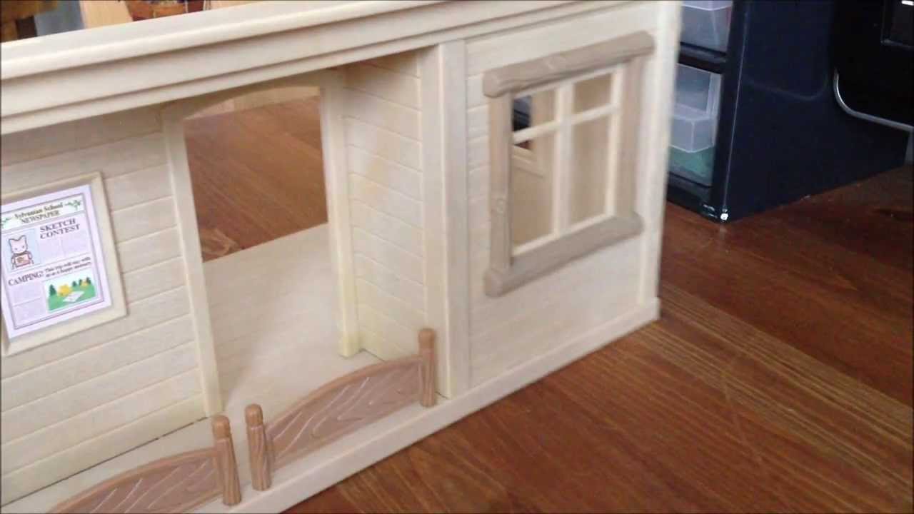 Description: A dog house made out of a cardboard box with a door and window on the inside of it and a sign on the outside of the door.