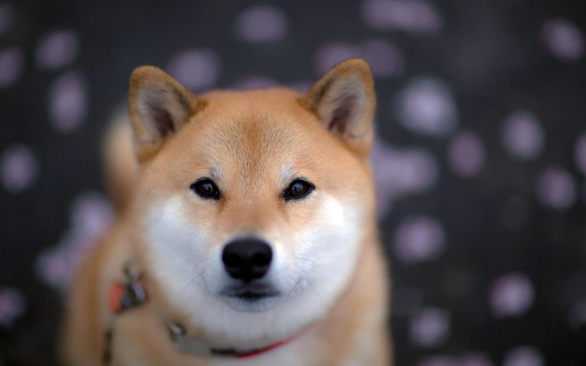 Description: A close up of a dog with a collar on looking at the camera with a smile on its face.