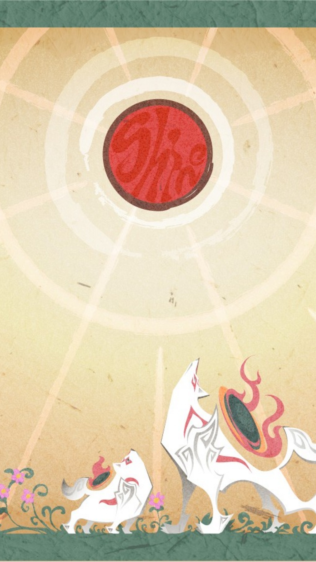 Description: A painting of two dogs in front of a red ball and a sun with a sky background and a green border.