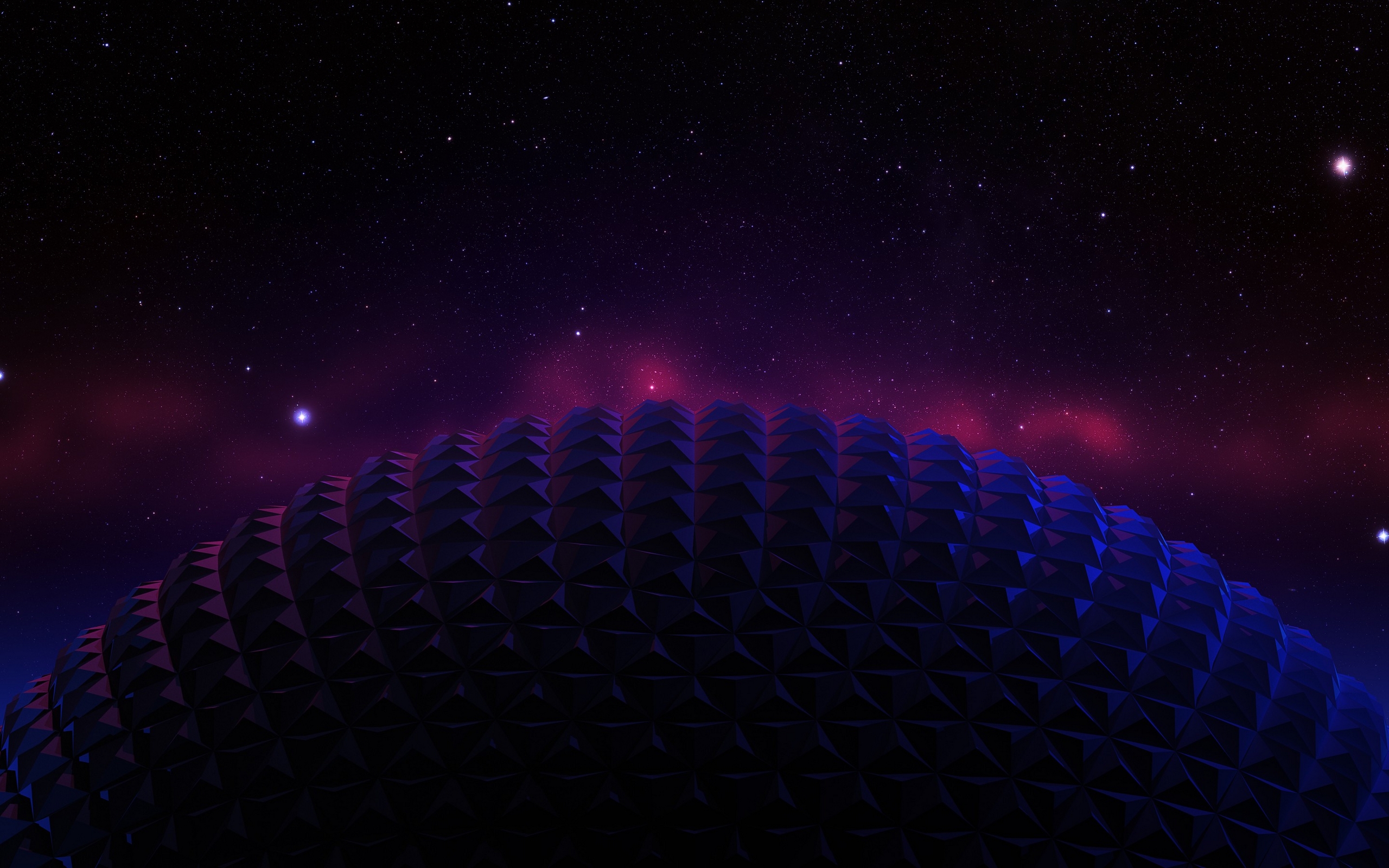 Description: A large building with a dome on top of it under a night sky with stars and a bright light.