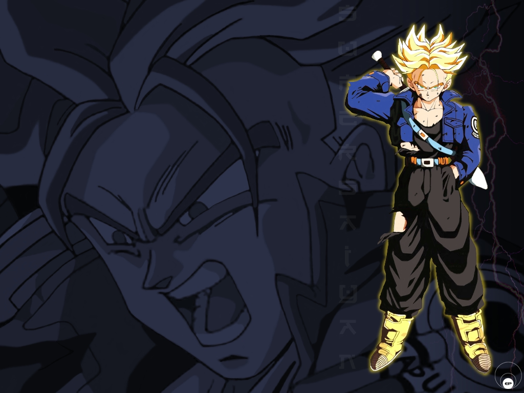 Description: A dragon with a blue shirt and yellow pants is standing in front of a black background with lightnings.
