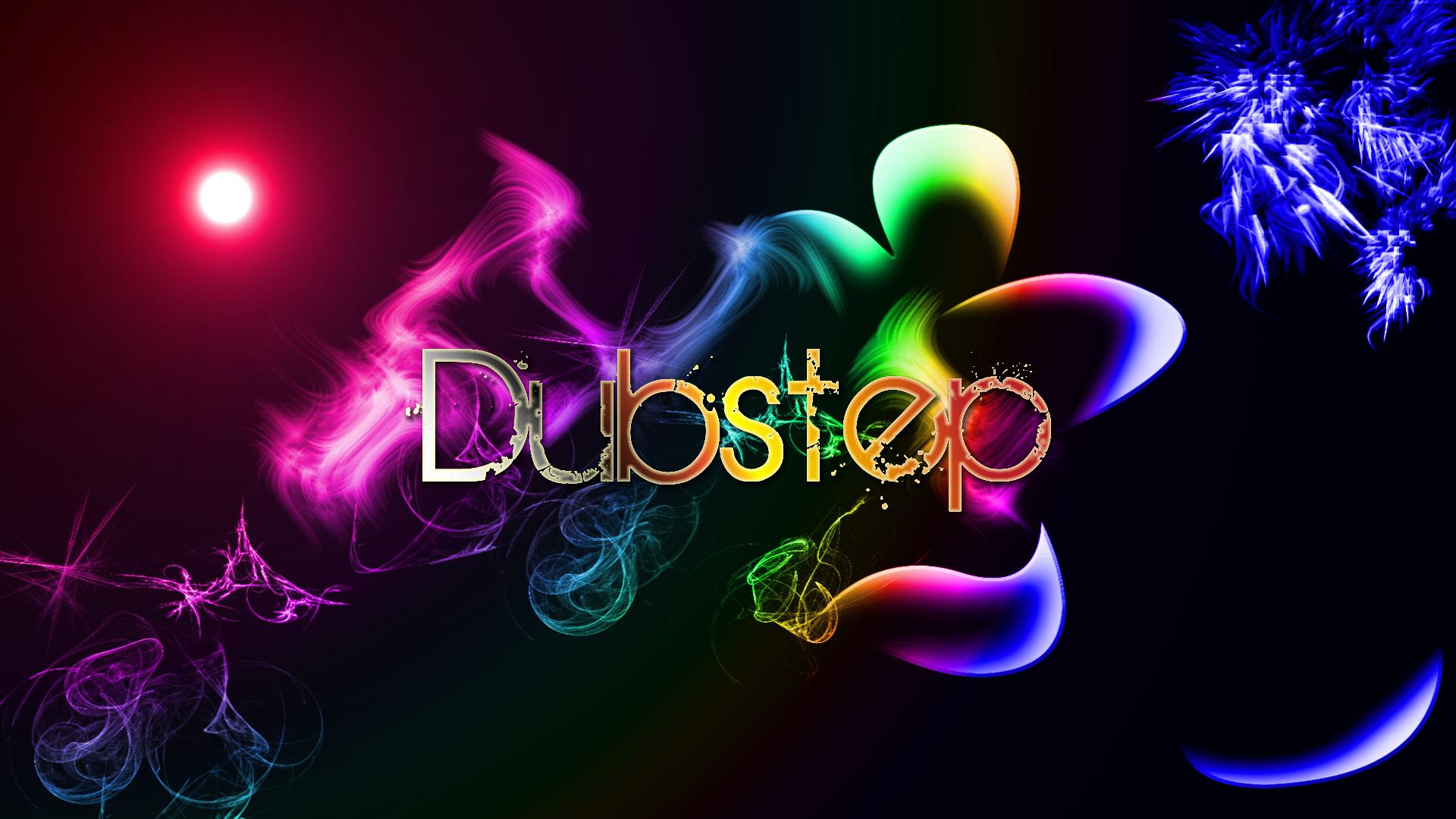 Description: A colorful text that reads dubstep on a black background with a colorful flower and a bright sun.