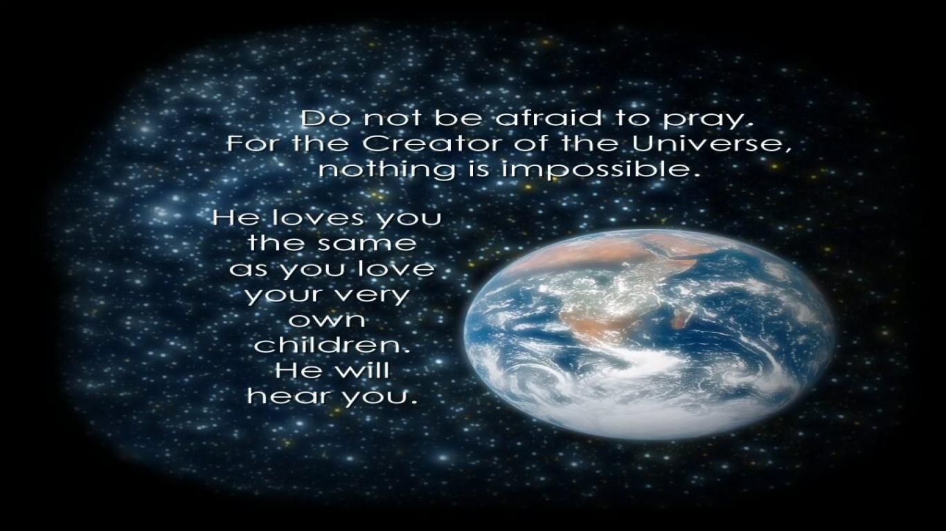 Description: A picture of the earth with a quote about it on it that says do not be afraid to pray for the creator of the universe.