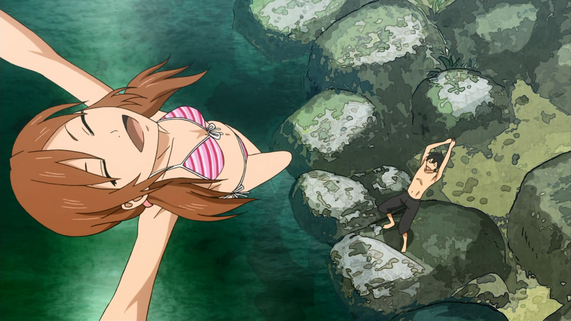 Description: A woman with a pink and white striped shirt and a man with a black shirt and a pink and white striped shirt.
