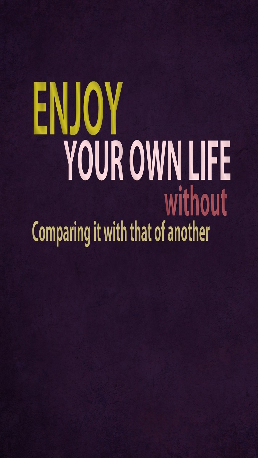 Description: A purple background with a quote that says enjoy your own life without comparing it with that of another person.