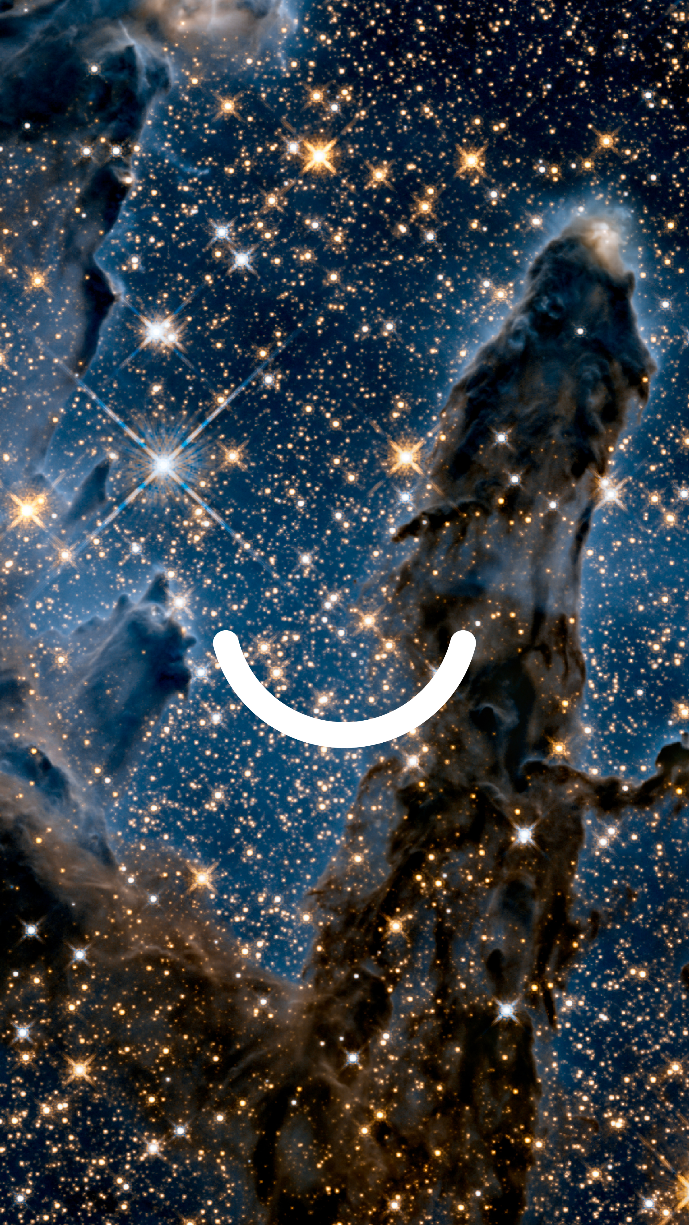 Description: A picture of a face in the sky with stars around it and a smiley face drawn on the side of the face.