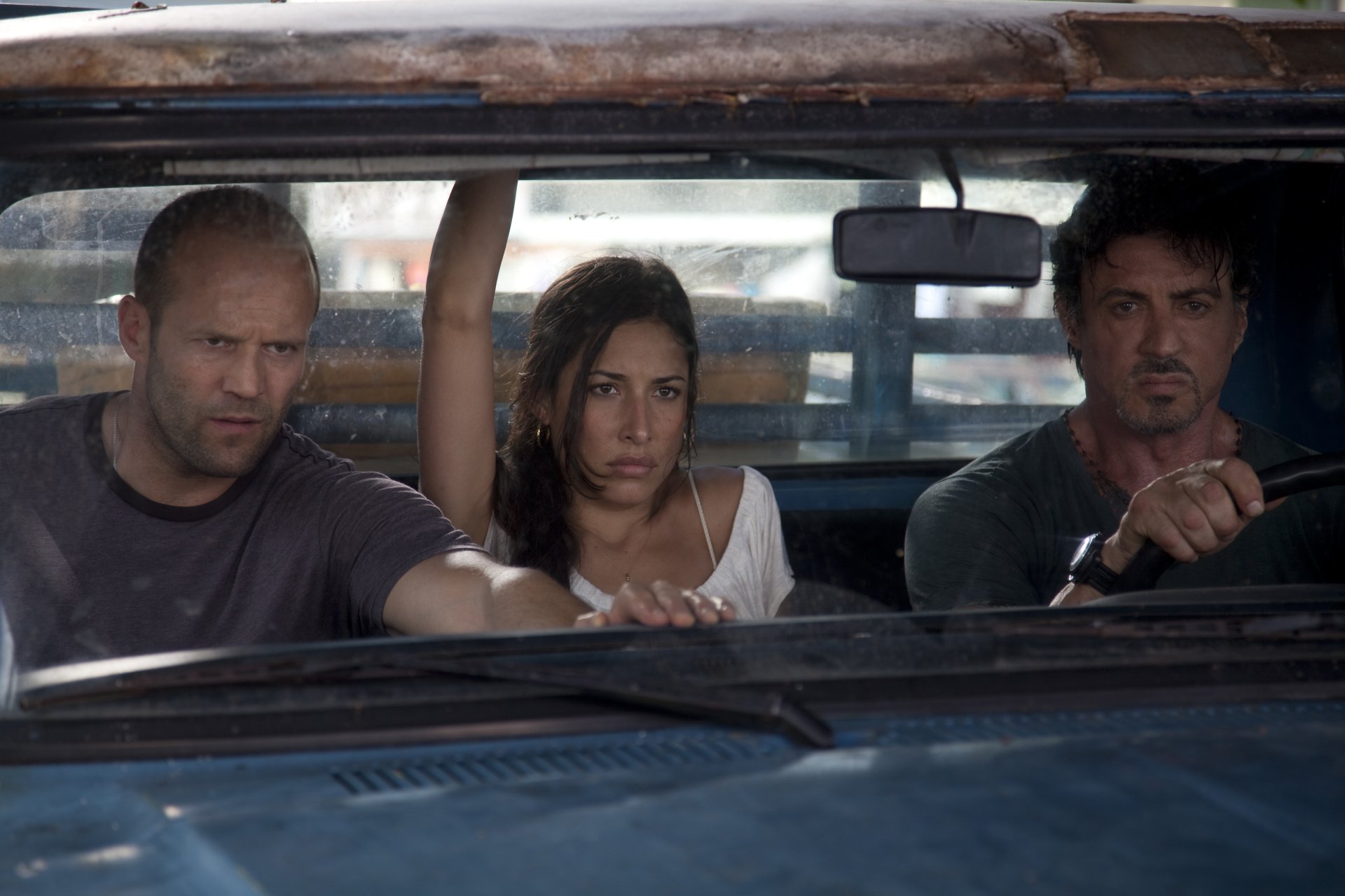 Description: A man and a woman sitting in a car with their hands up in the air and a man holding a gun.