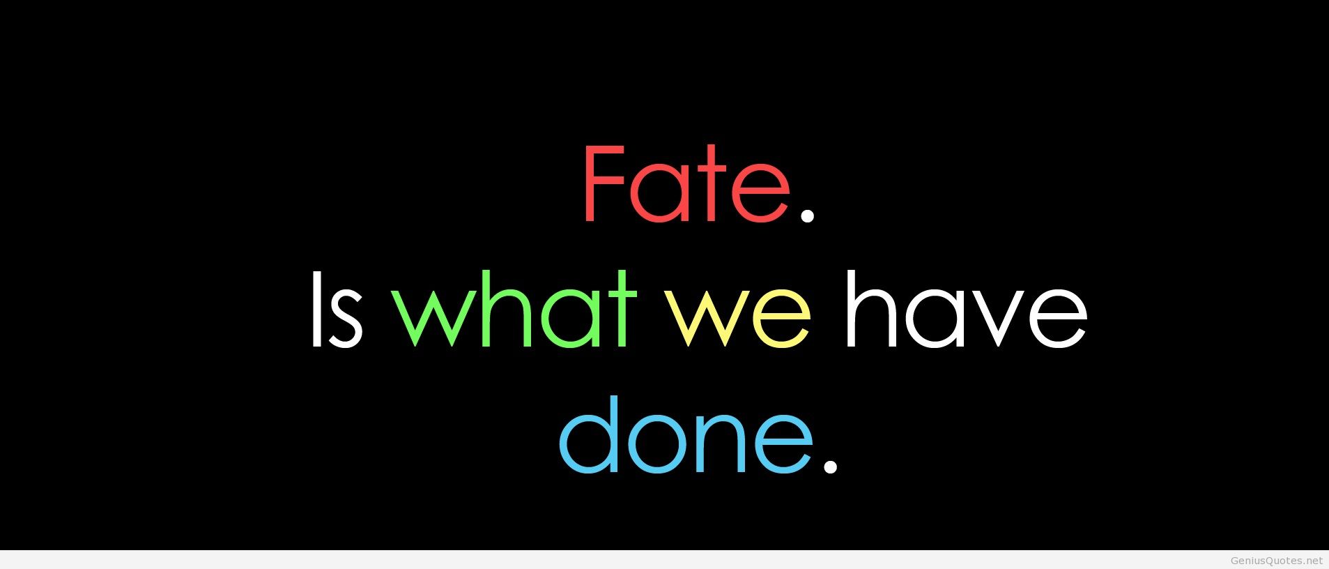 Description: A black background with a colorful quote on it that says fate is what we have done done.