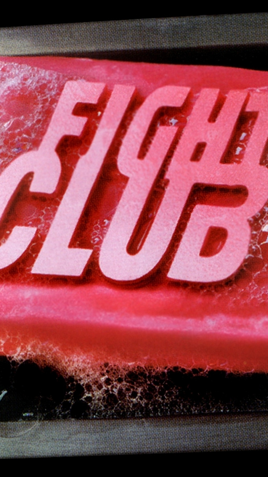 Description: A red sign that says fight club on it's side of a building with a black background and a red background.