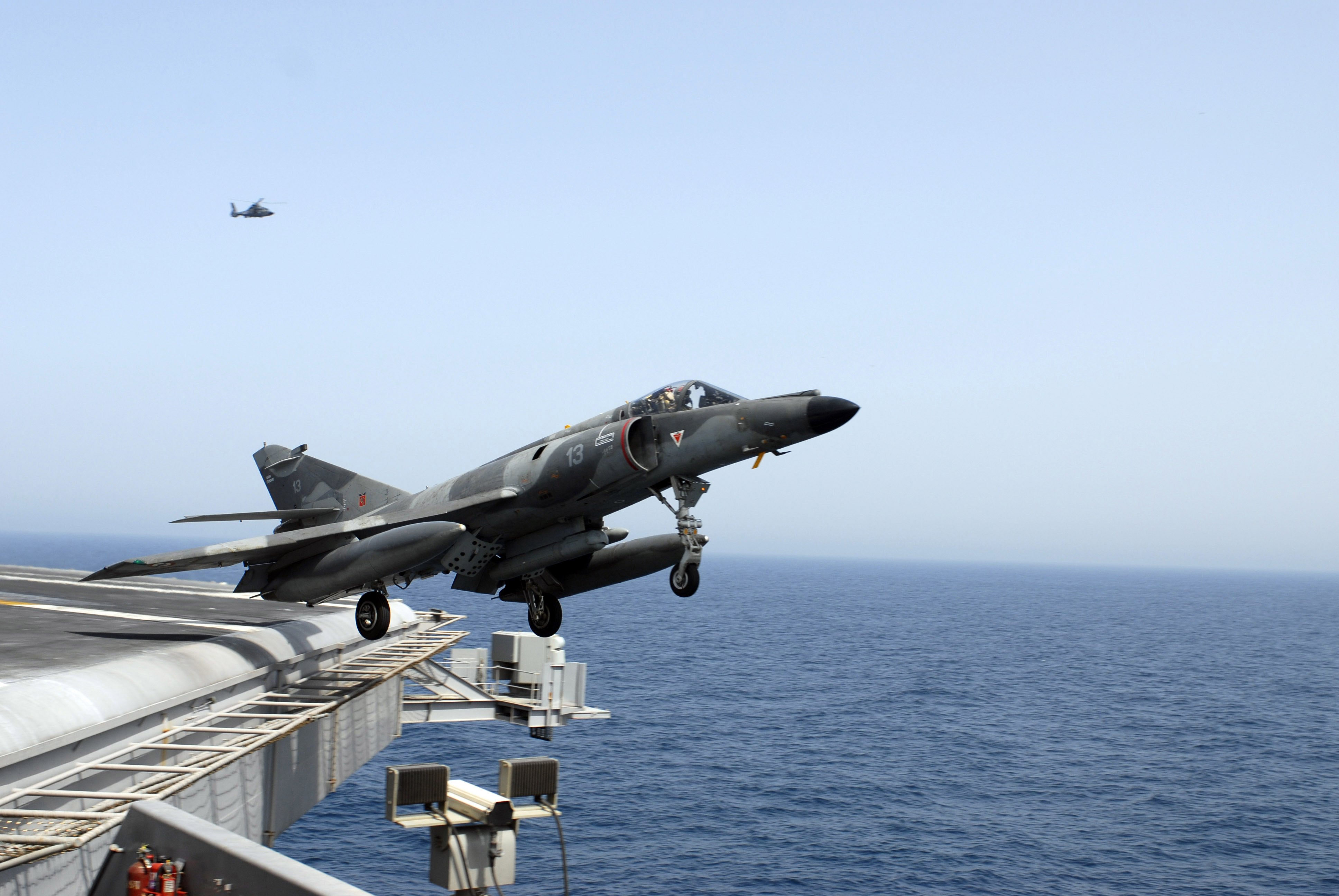 Description: A fighter jet is flying over the ocean on a ship in the ocean with a fighter jet in the background.