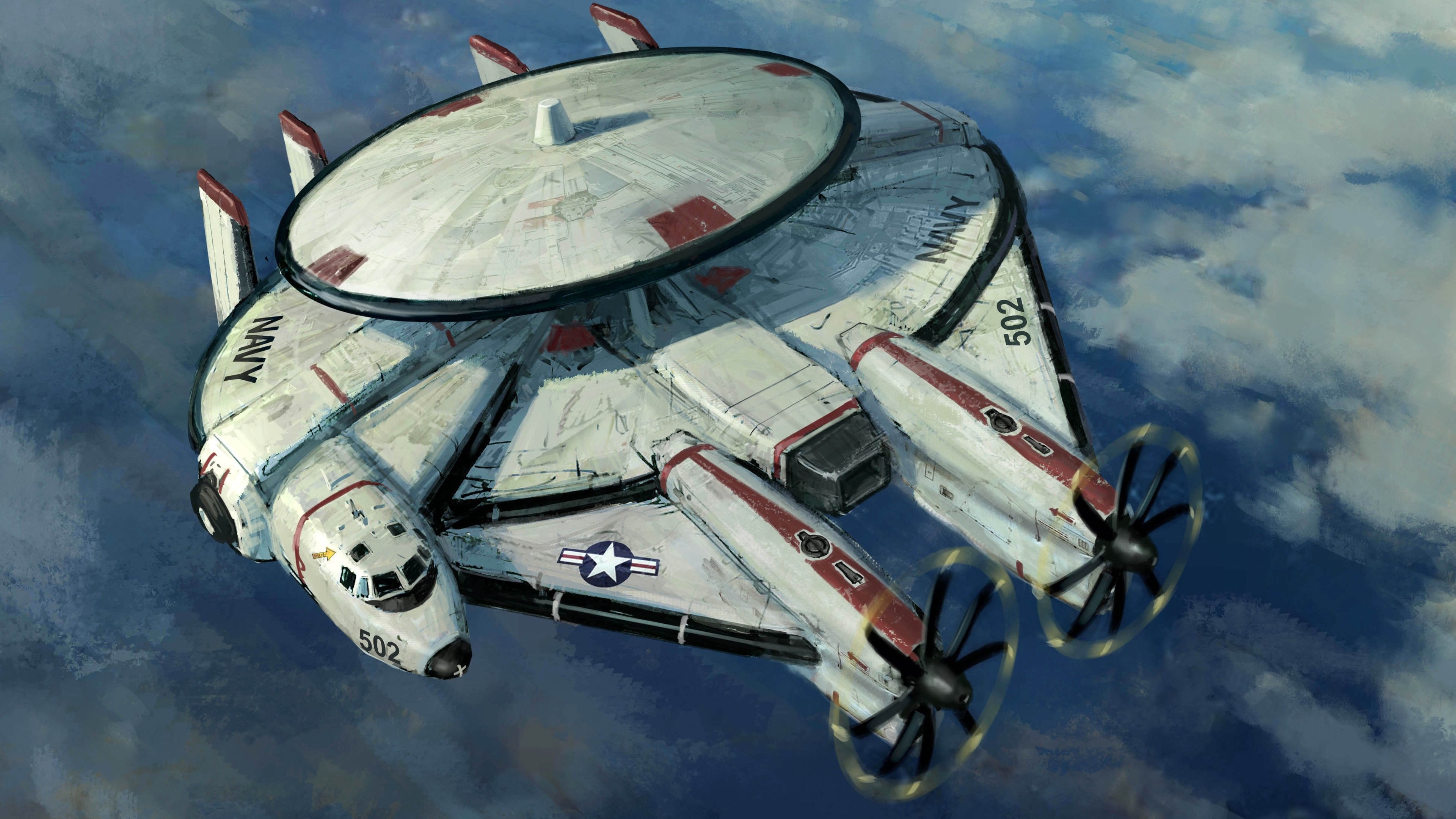 Description: A painting of a fighter jet flying through the sky with a star trek insignia on it's side.