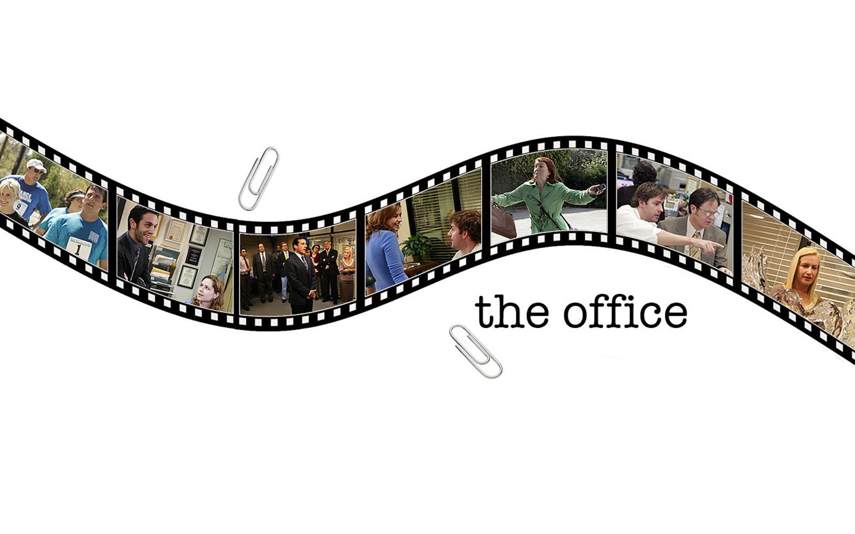 Description: A film strip with a picture of people in it and the words the office on it in black and white.