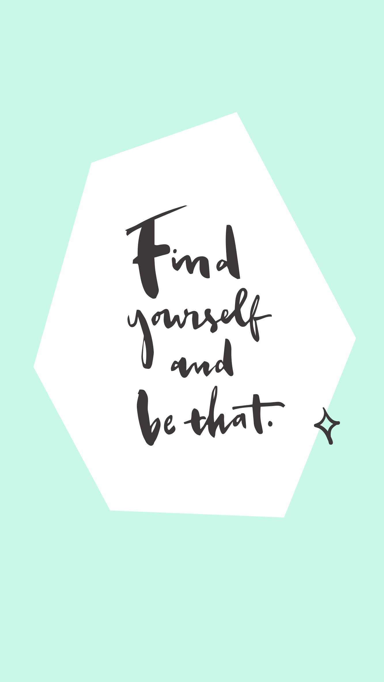 Description: A piece of paper with a handwritten quote on it that says find yourself and be what you want.