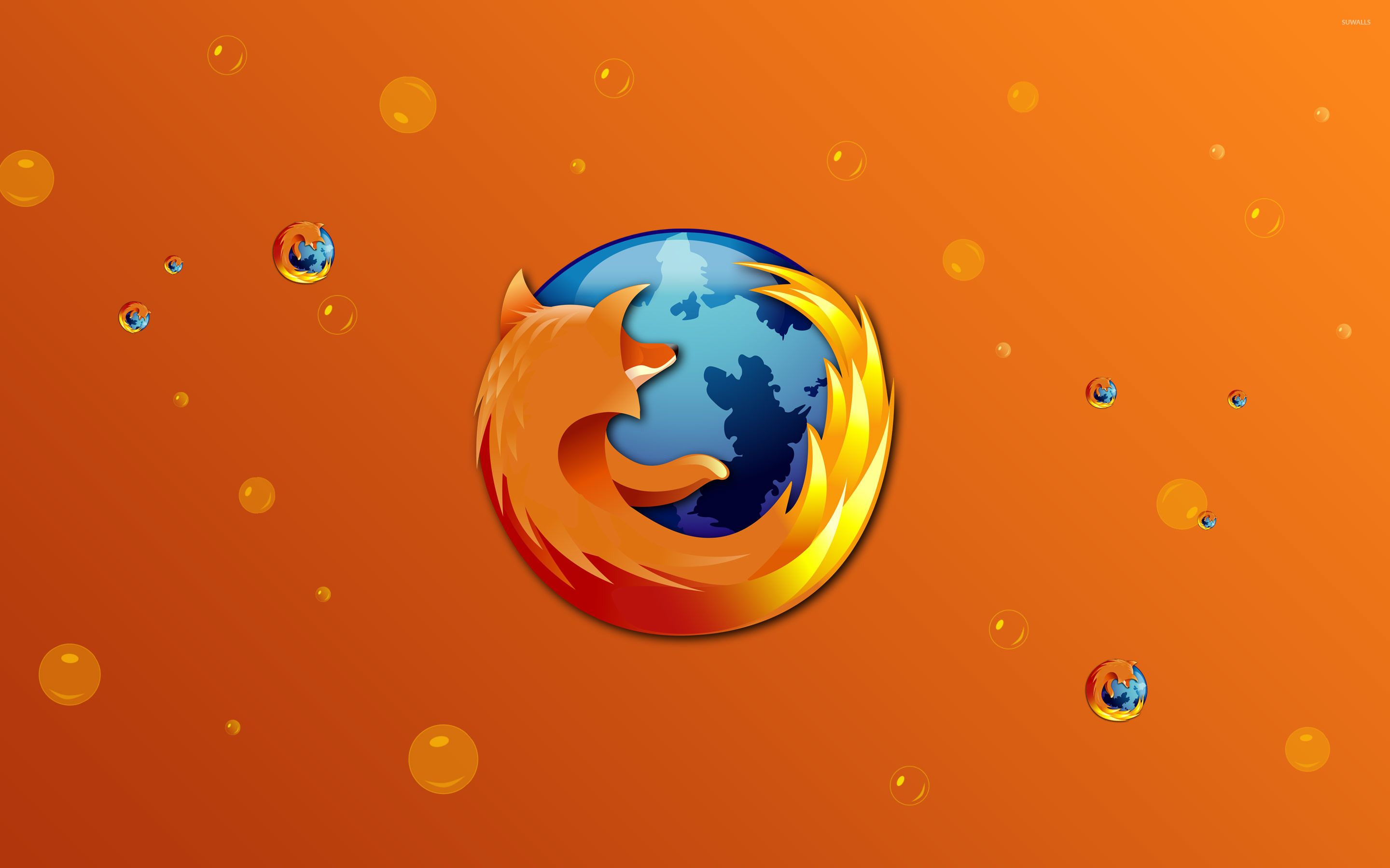 Description: A firefox logo on an orange background with bubbles of water around it and a globe in the center.