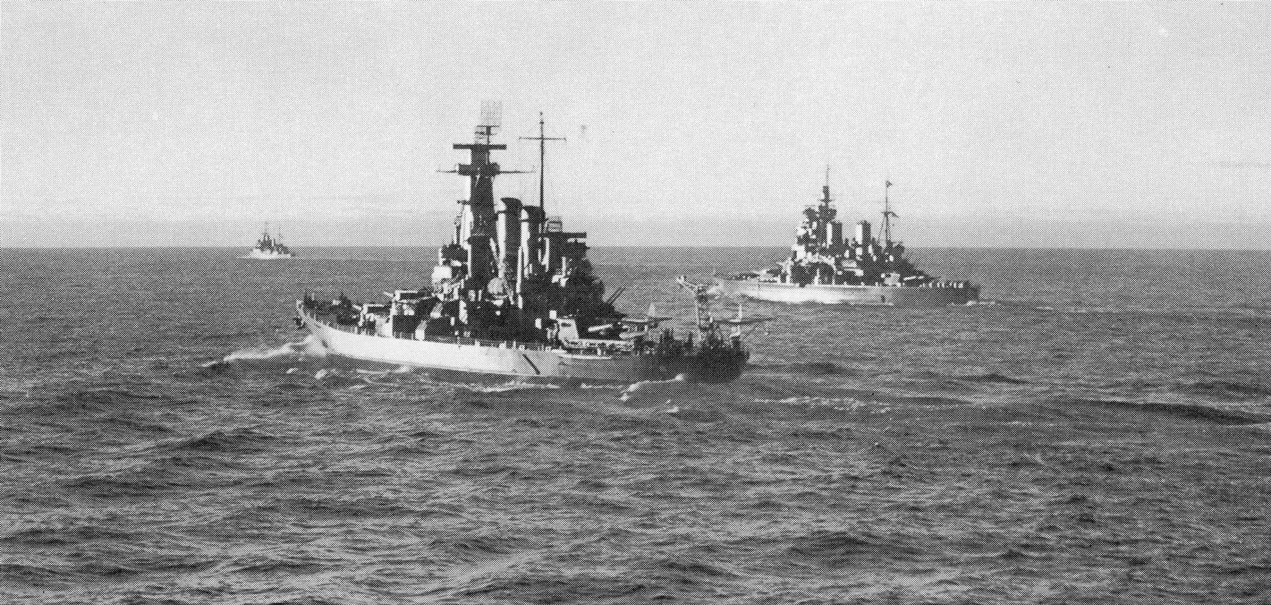 Description: A fleet of ships in the ocean with a smaller boat in the background and a smaller boat in the foreground.