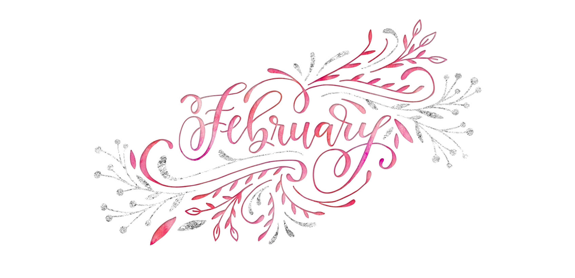 Description: A drawing of a floral design with the words february written in cursive writing on it's side.