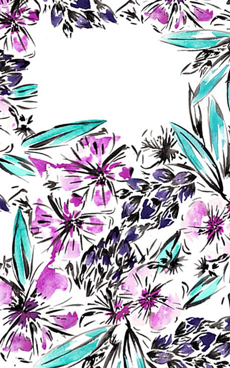 Description: A floral frame with purple flowers and leaves on a white background with a place for text or a picture.