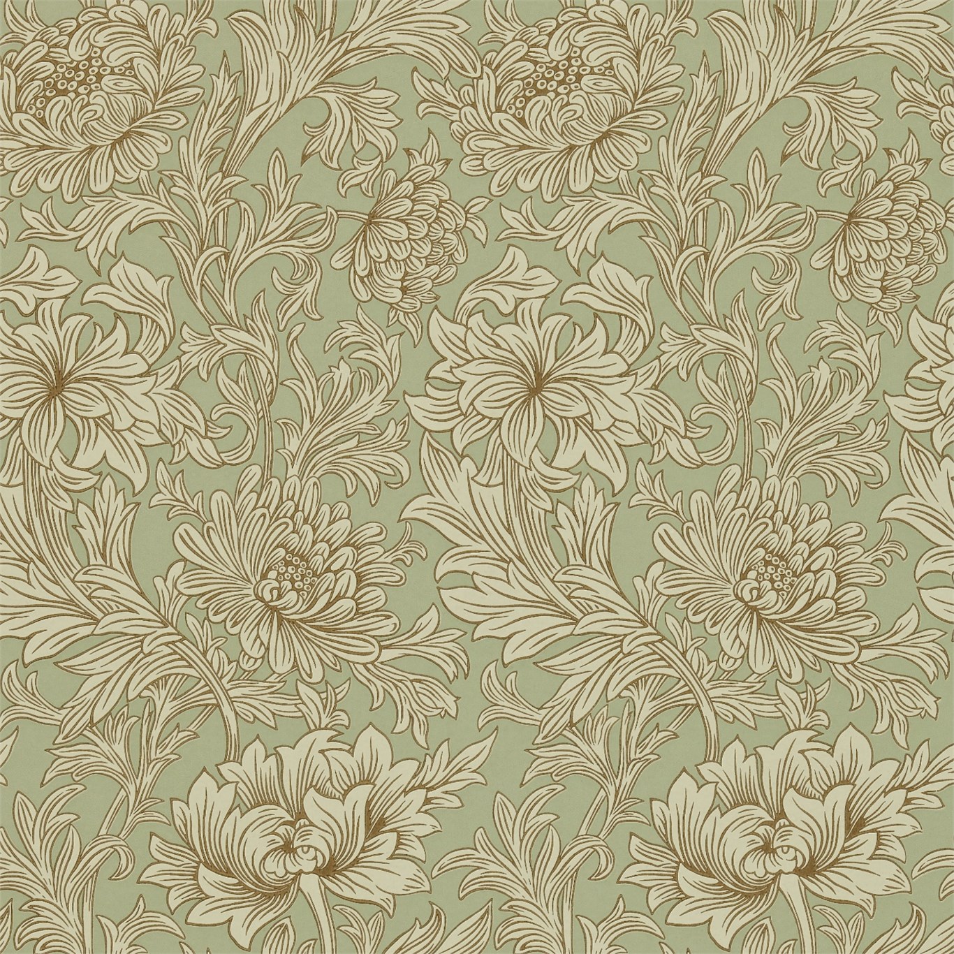 Description: A floral pattern with many flowers on a green background.