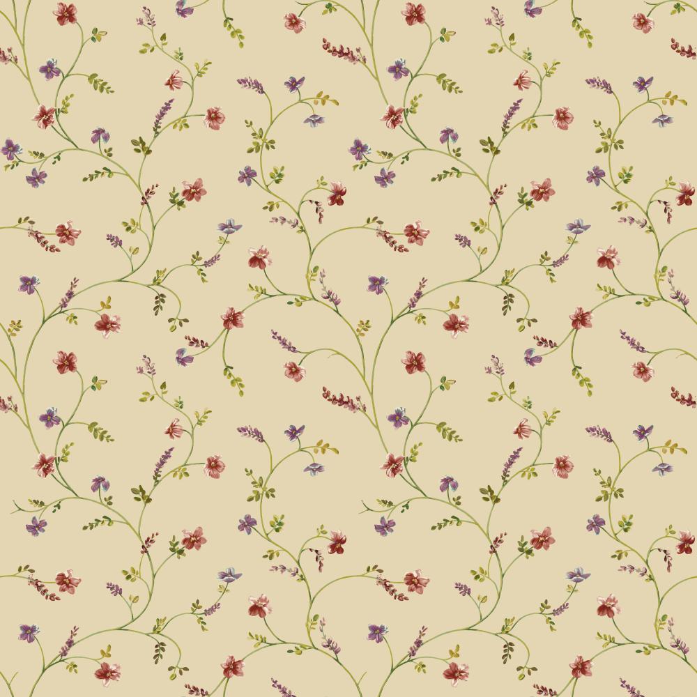 Description: A floral pattern with many small flowers on a beige background.