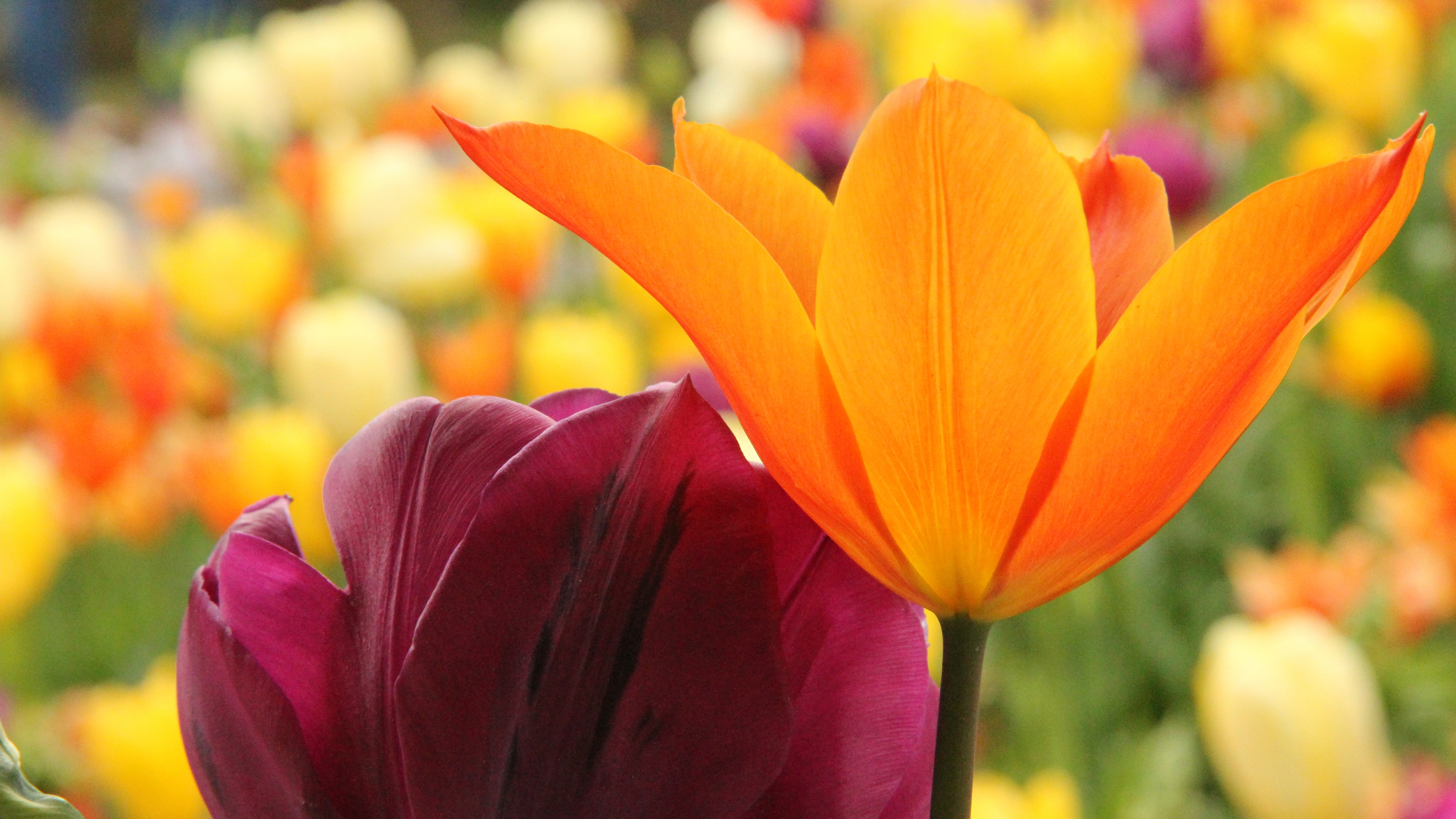 Description: A close up of a flower with many flowers in the background and a blurry background of flowers in the foreground.
