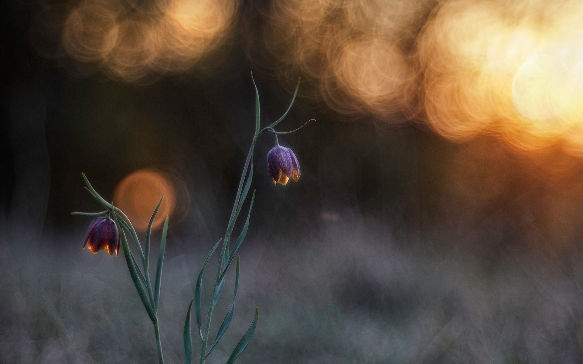Description: A close up of a flower with blurry background and light in the background.