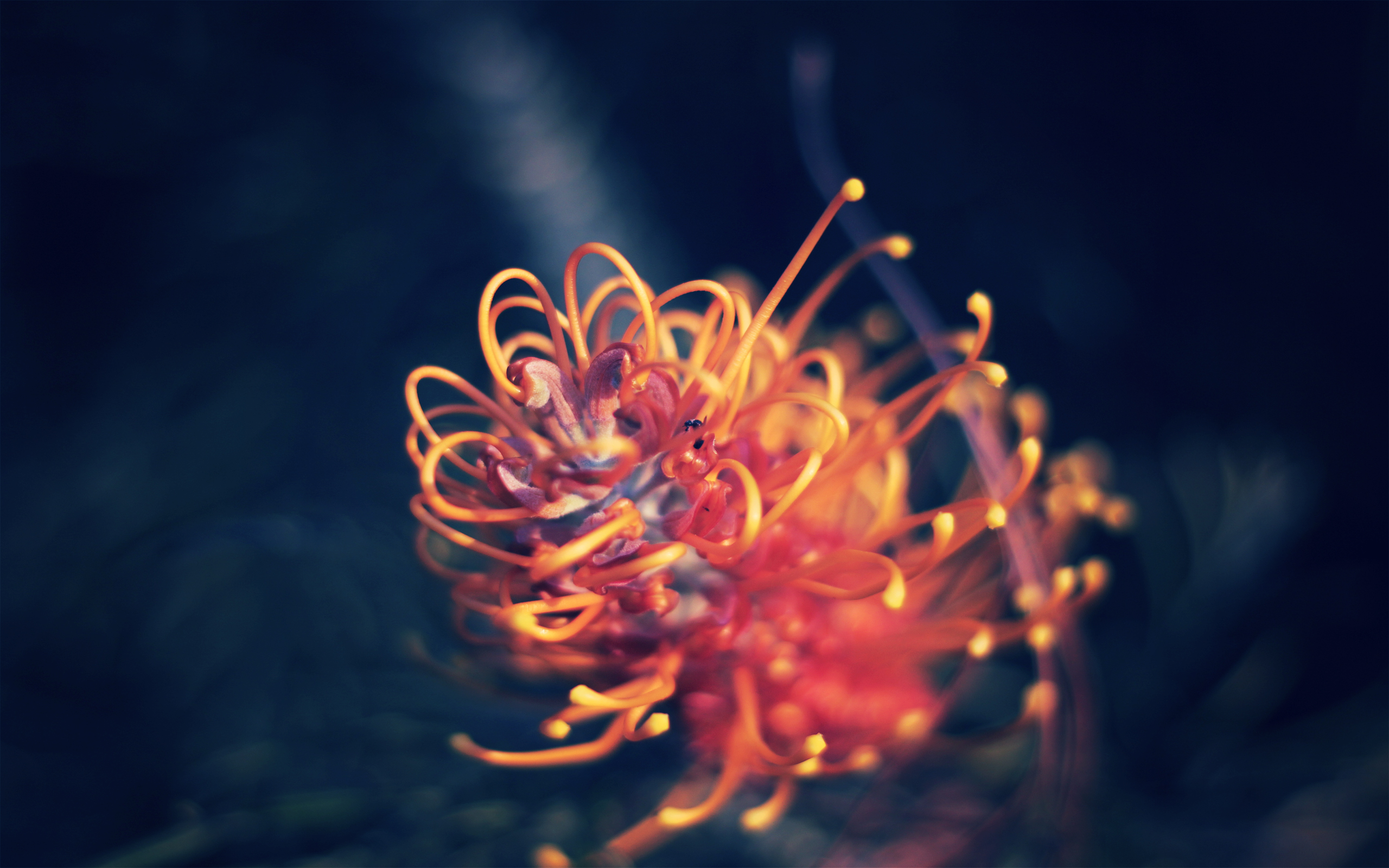Description: A close up of a flower with a blurry background of leaves and flowers in the background.