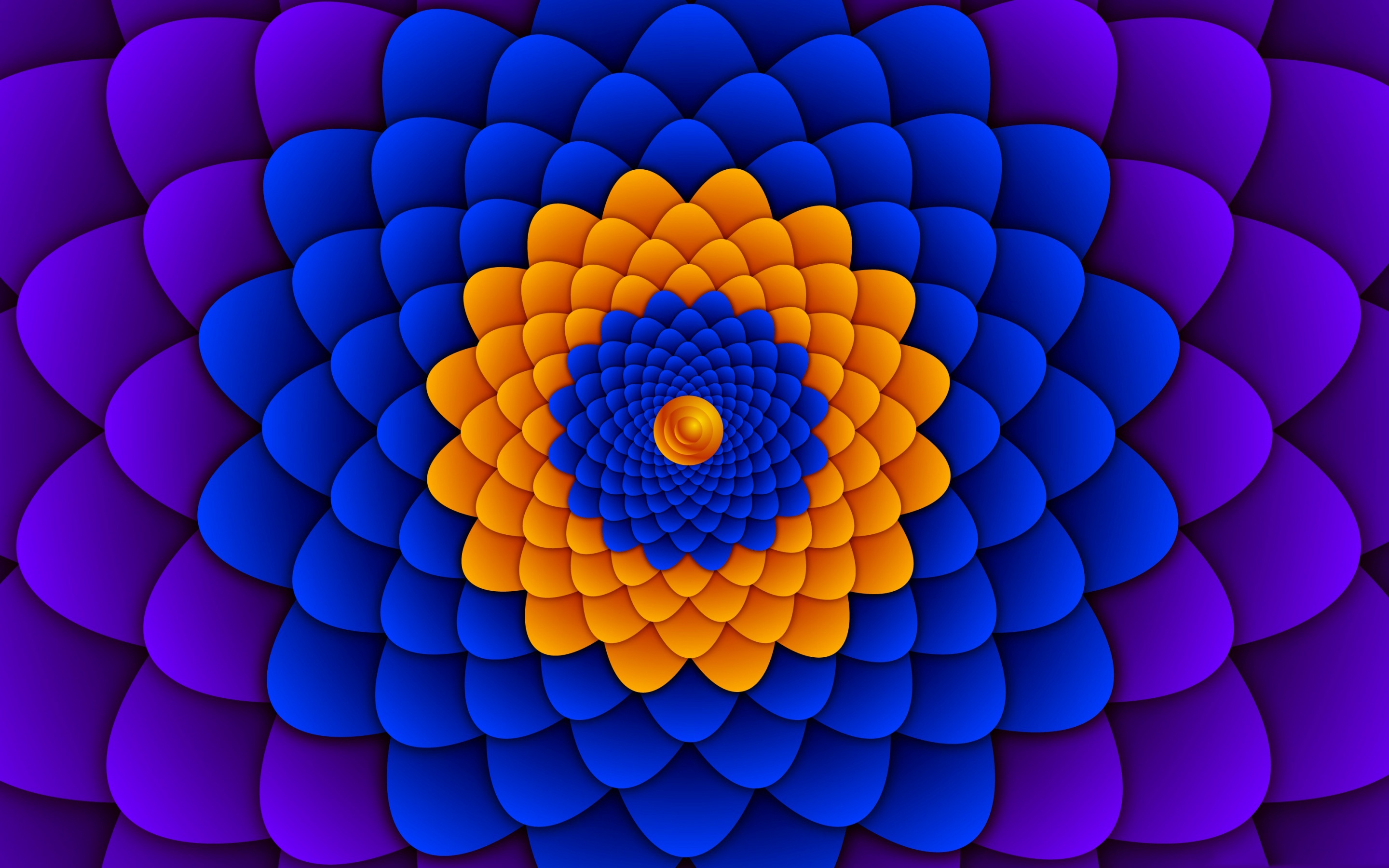 Description: A computer generated image of a flower with a blue center and orange center in the center of the flower.